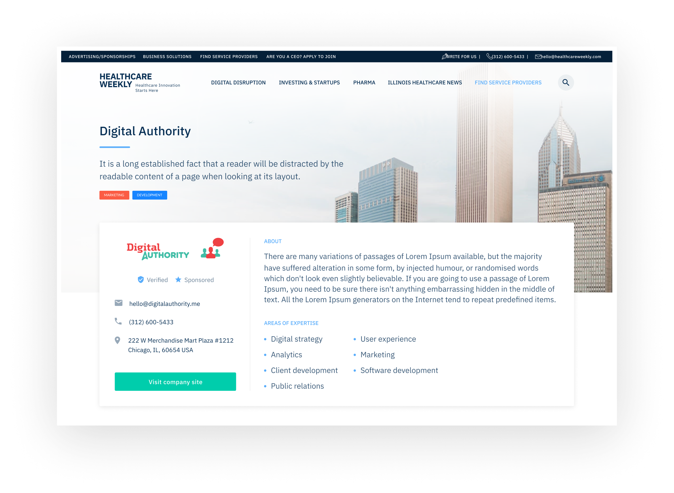 Create a dedicated, custom Healthcare Weekly Verified Profile listing and be easily found by healthcare executives searching for your services